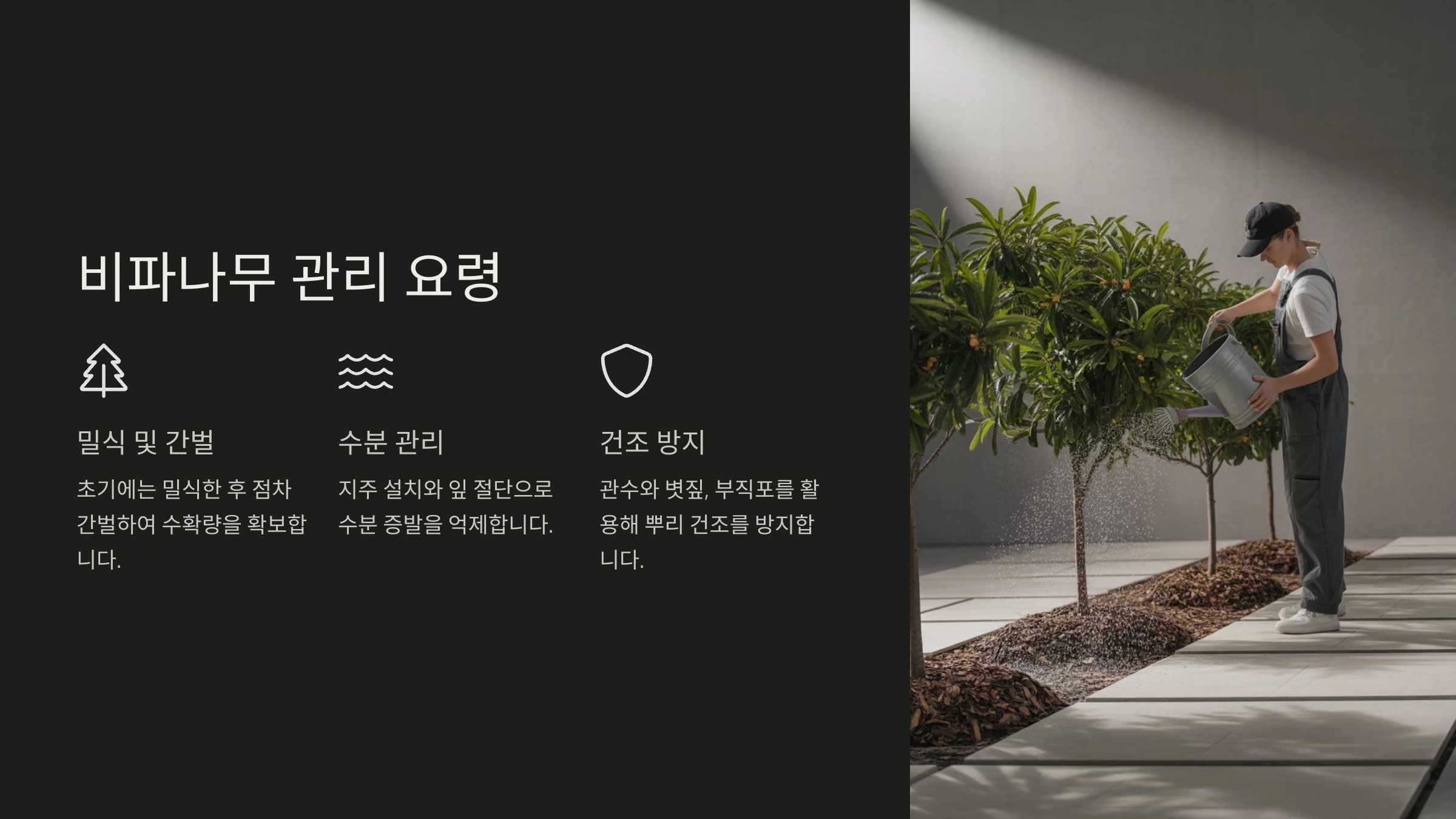 | 봄 (3~5월) | 열매가 커지는 시기, 건조하지 않게 물 관리. |