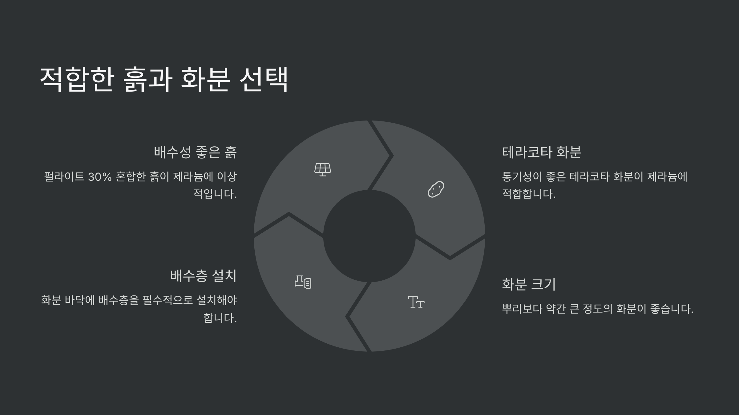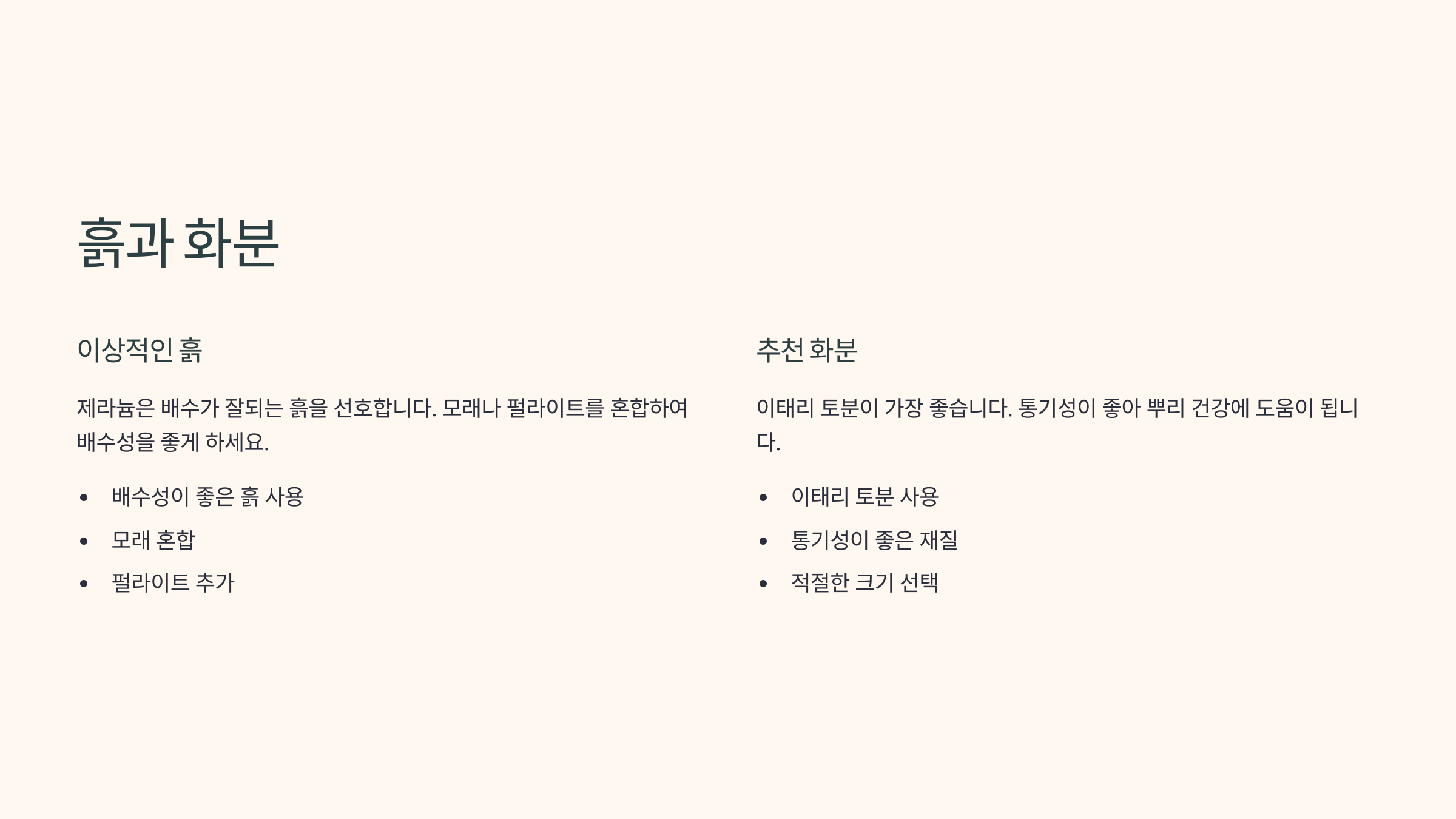 - 흙 (배양토) 🪴: 배수가 매우 잘 되는 흙을 사용해야 해요. 일반 상토에 펄라이트, 마사토, 녹소토 등을 30~50% 정도 섞어주면 물 빠짐이 좋아 과습을 예방할 수 있습니다.