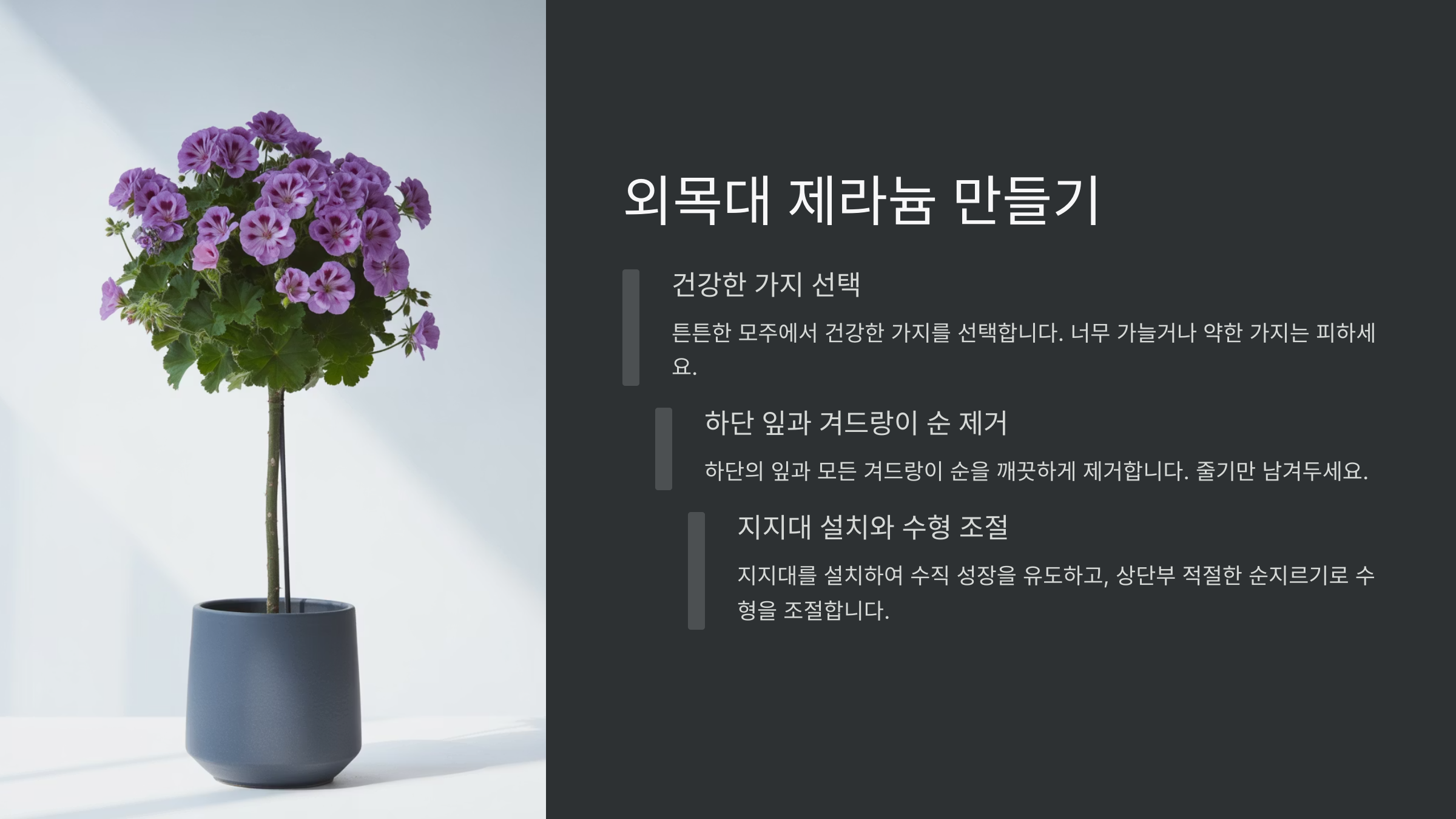 5. 나만의 미니 트리! 제라늄 외목대 만들기 도전 🌳