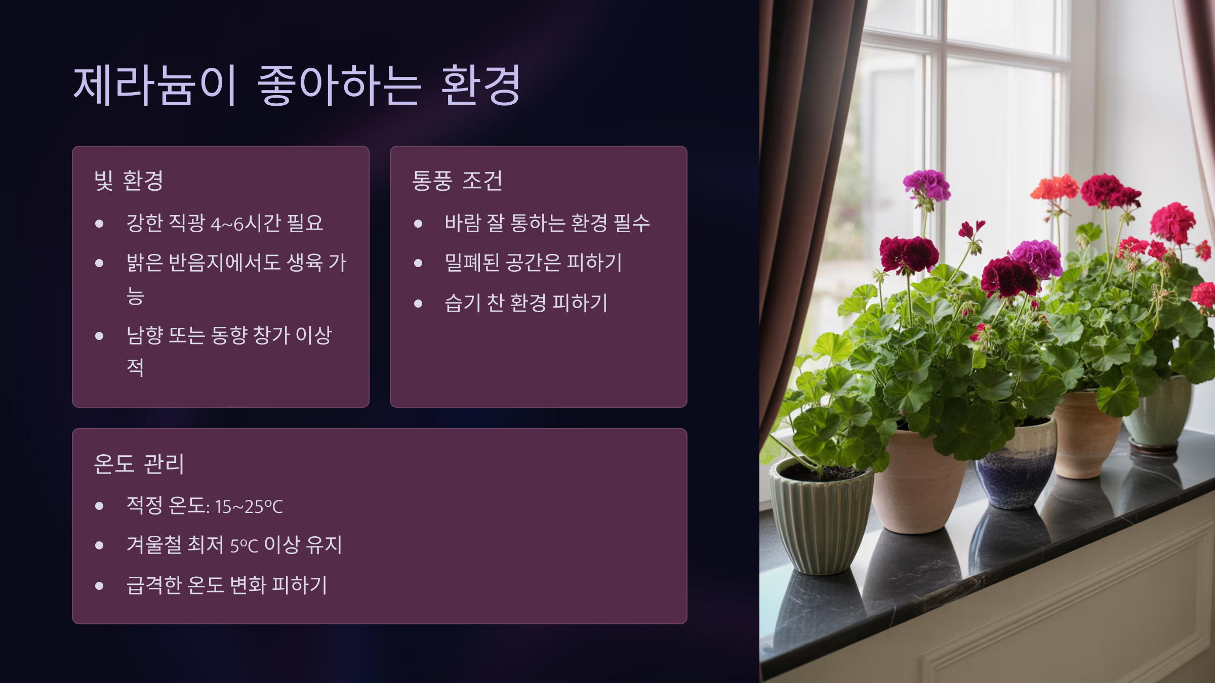 6. 제라늄이 좋아하는 환경 (햇빛, 통풍, 흙, 온도) ☀💨🪴