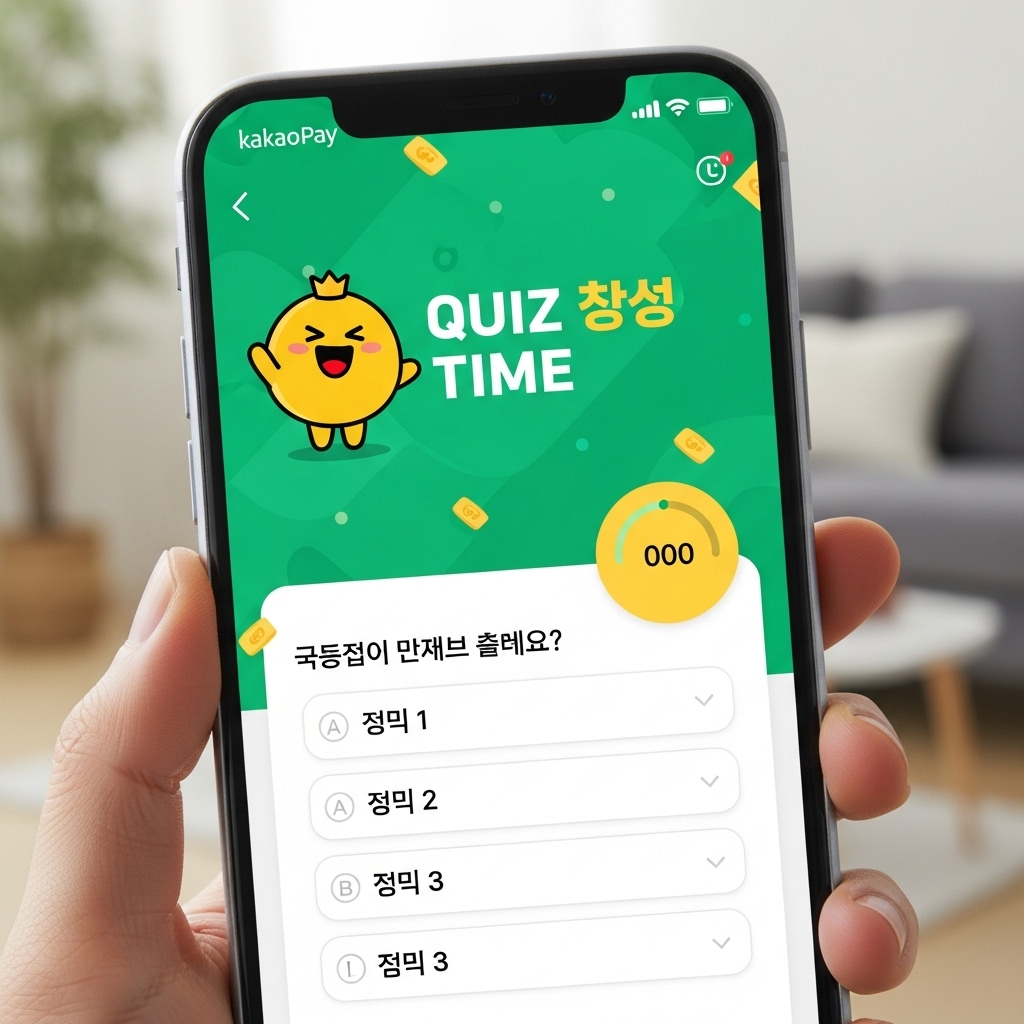 카카오페이 퀴즈타임은 카카오페이 앱에서 매일 참여할 수 있는 이벤트로, 간단한 퀴즈를 맞히면 포인트가 적립되는 서비스입니다.
