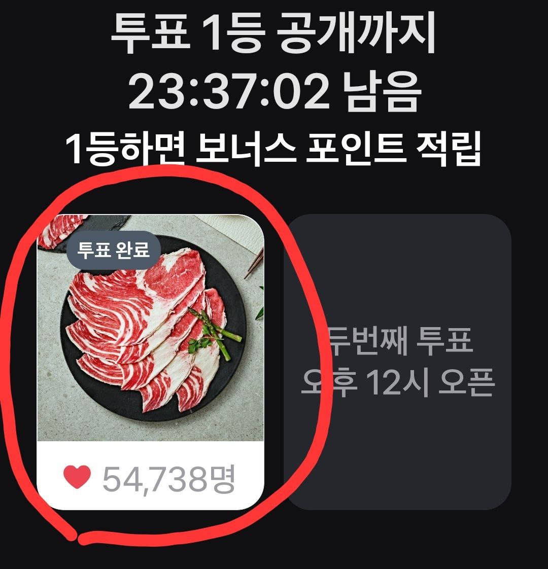 그 다음 혜택 탭에서 ‘두근두근 1등 찍기’ 메뉴를 찾아 매일 갱신되는 상품 리스트 중 1등이 될 상품을 선택하고 투표하면 됩니다.