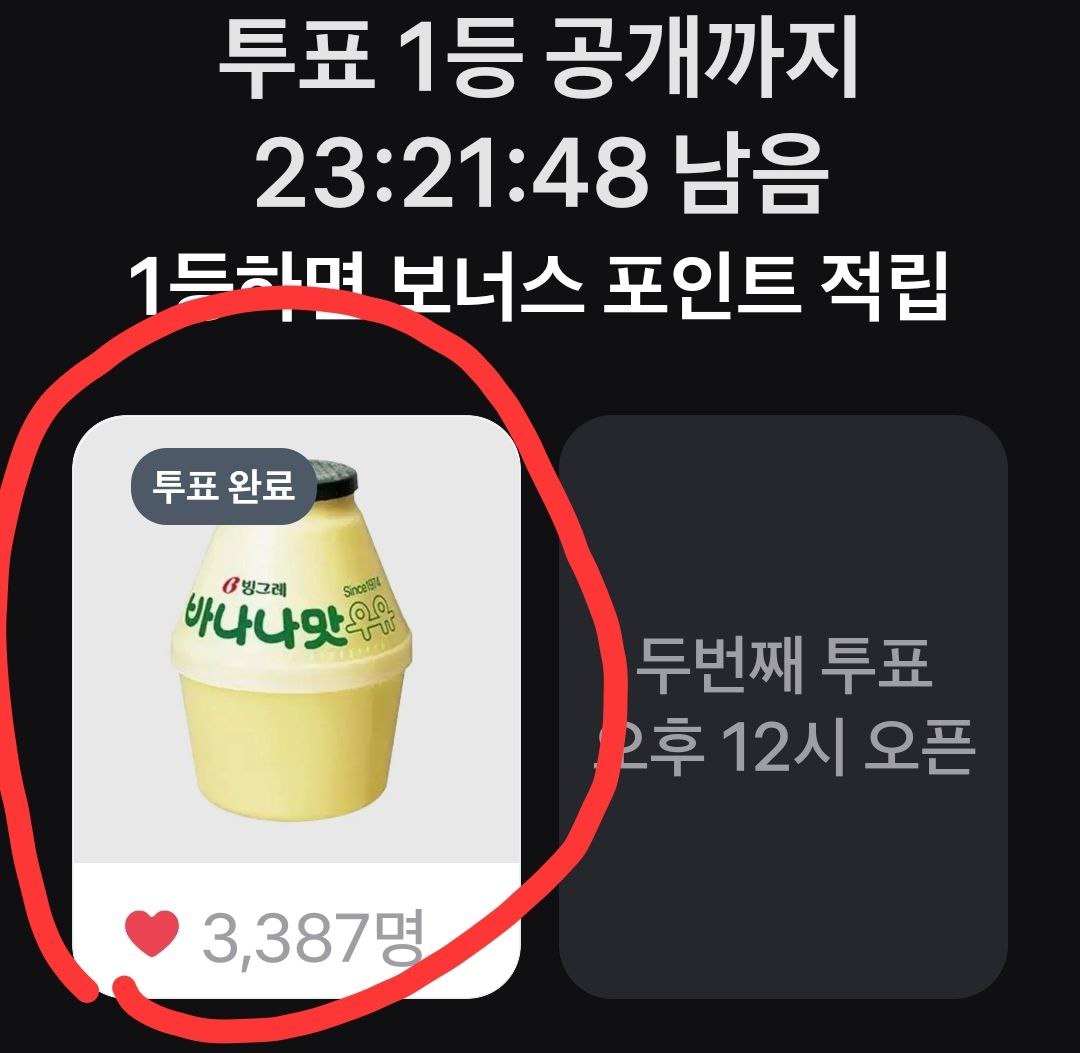 그중 “오늘 1등이 될 것 같은 상품”을 고르면 투표가 완료돼요.