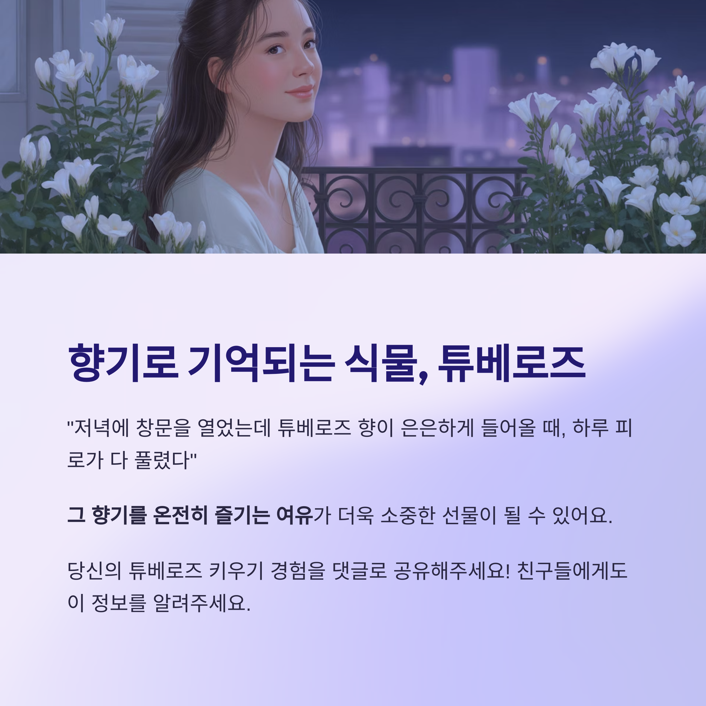 “저녁에 창문을 열었는데 튜베로즈 향이 은은하게 들어올 때, 하루 피로가 다 풀렸다”고 합니다.