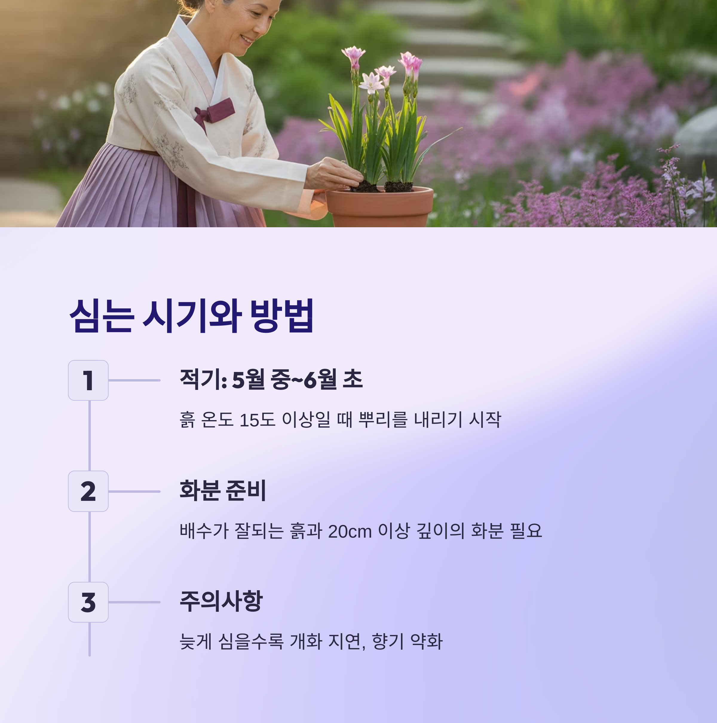 늦게 심을수록 개화가 지연되고 향기도 약해질 수 있습니다.