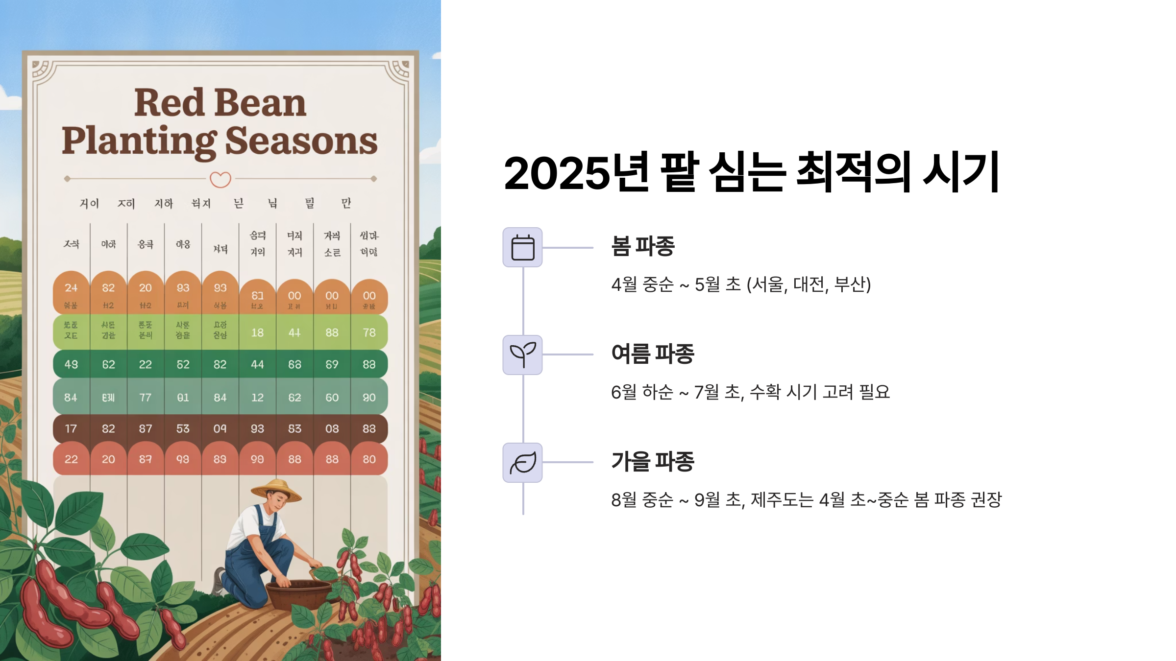 2. 2025년 팥 심는 최적의 시기 (파종시기) 📊