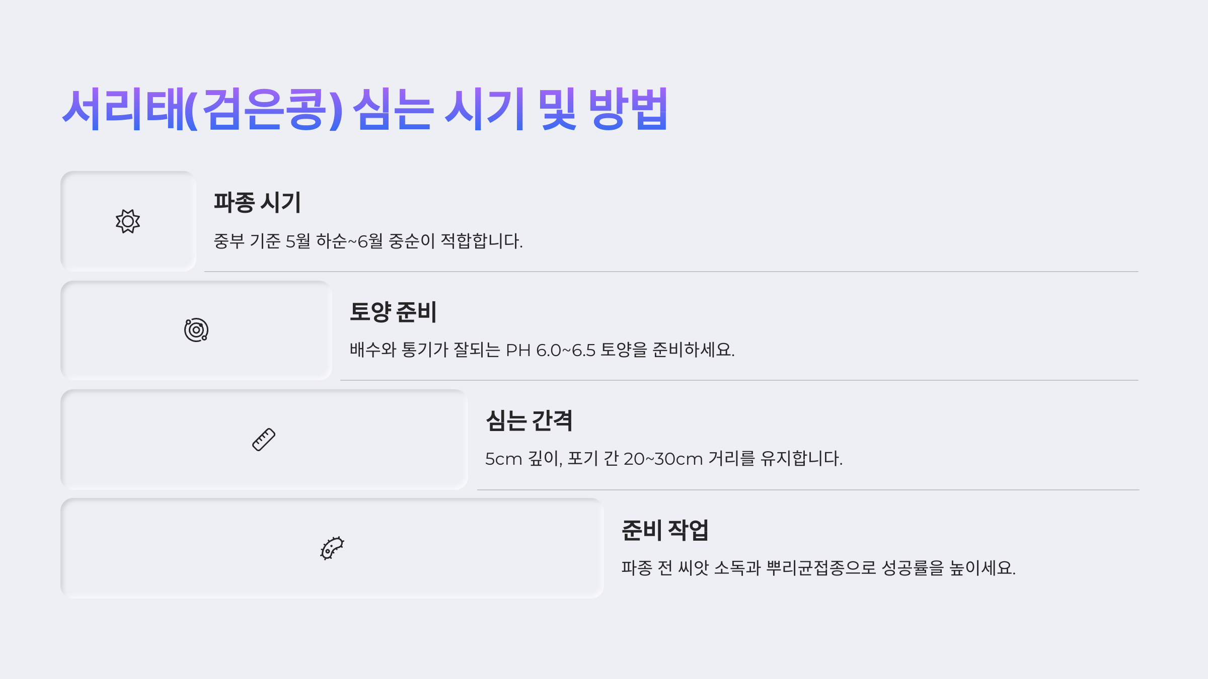 | 검은콩 심는시기와 콩 키우는 방법 총정리! 서리태·쥐눈이콩 재배 노하우 (0) | 2025.06.14 |