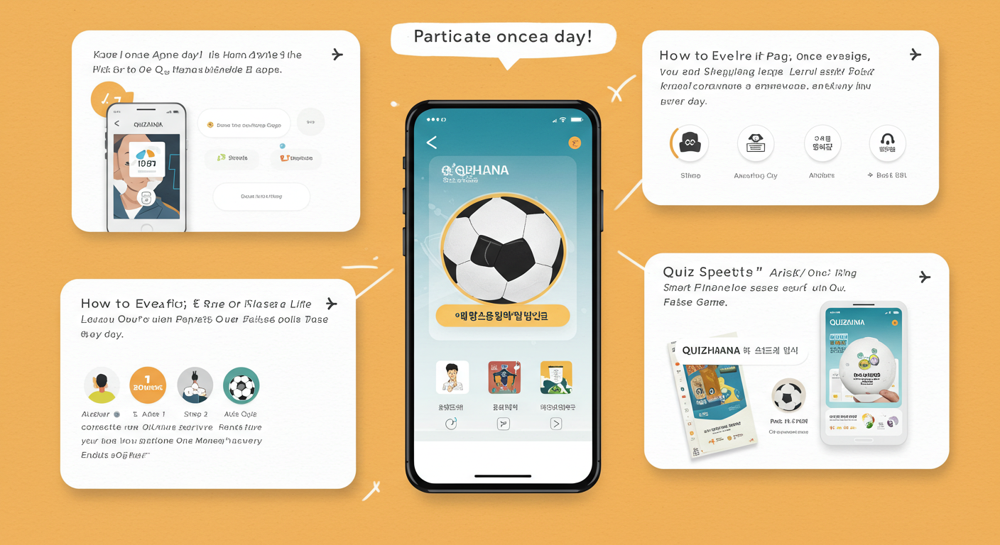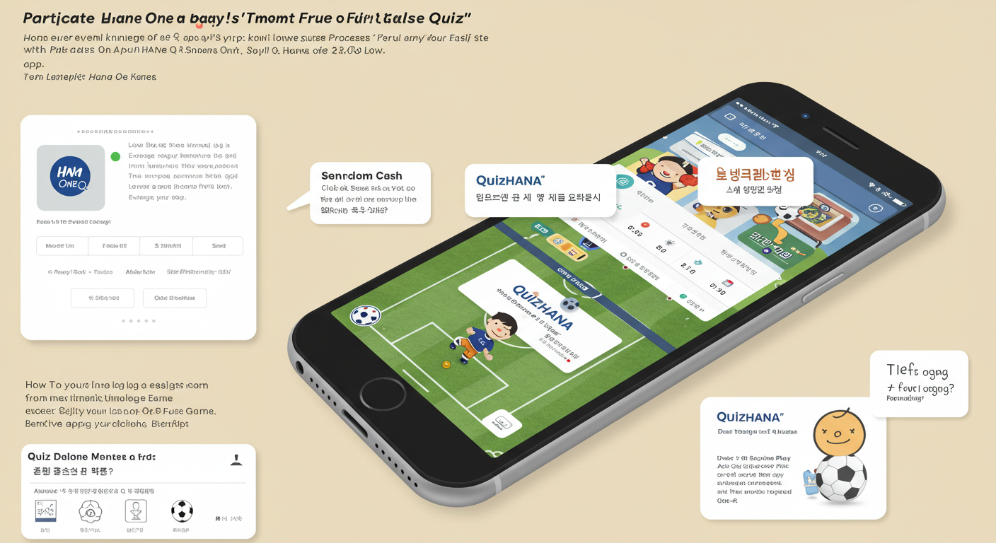 - 참여 경로: 앱 → 하단 메뉴 → 이벤트/스포츠 → 하나원큐 축구Play → 퀴즈HANA