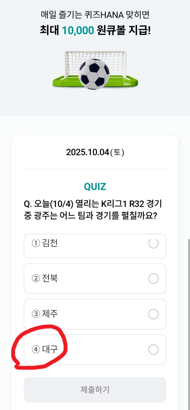 하나원큐 축구퀴즈에 참여하는 방법은 단순하고 직관적이에요.