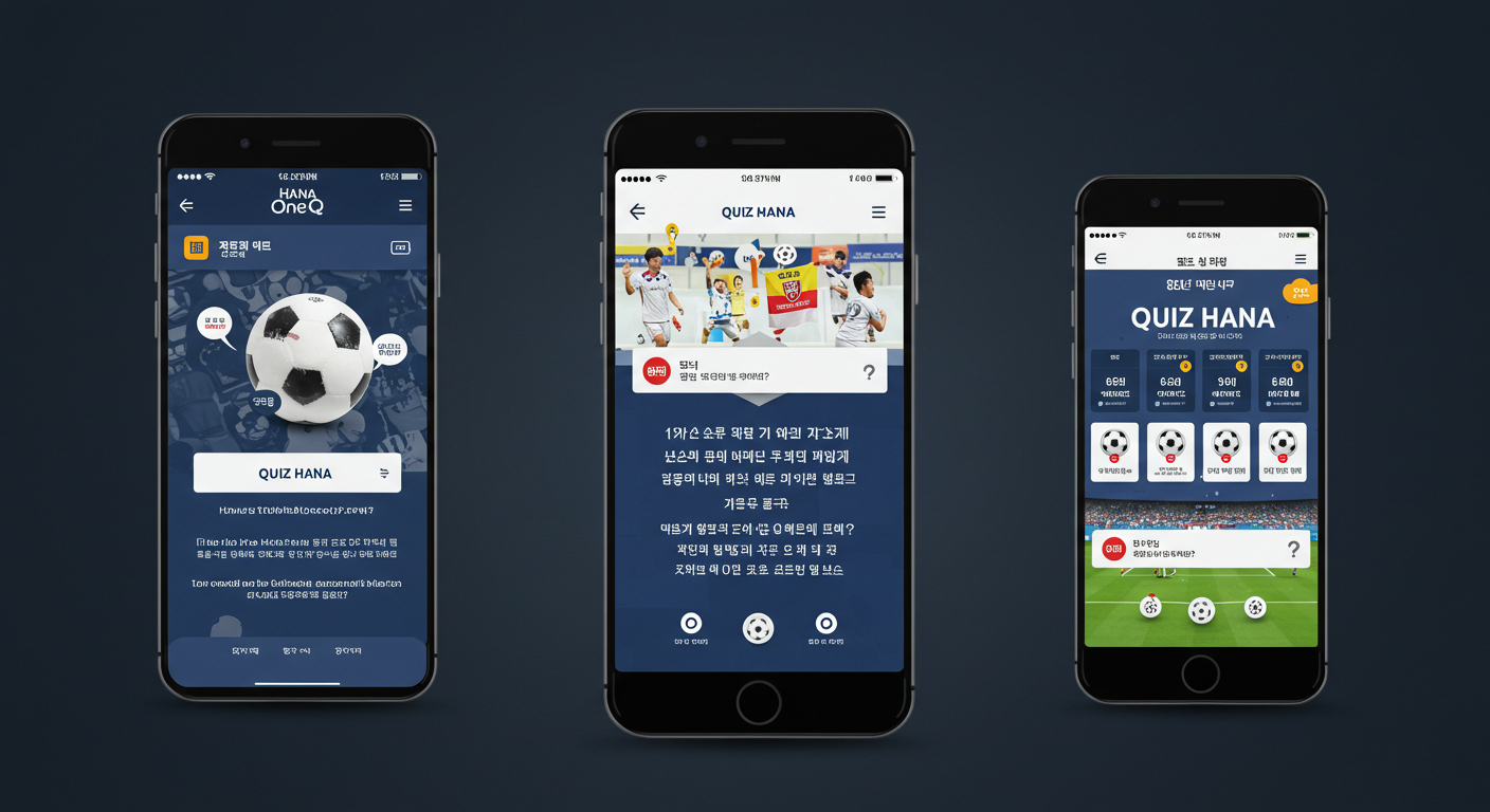 하나은행의 공식 모바일 앱 ‘하나원큐’에서는 매일 축구퀴즈 이벤트가 진행됩니다.