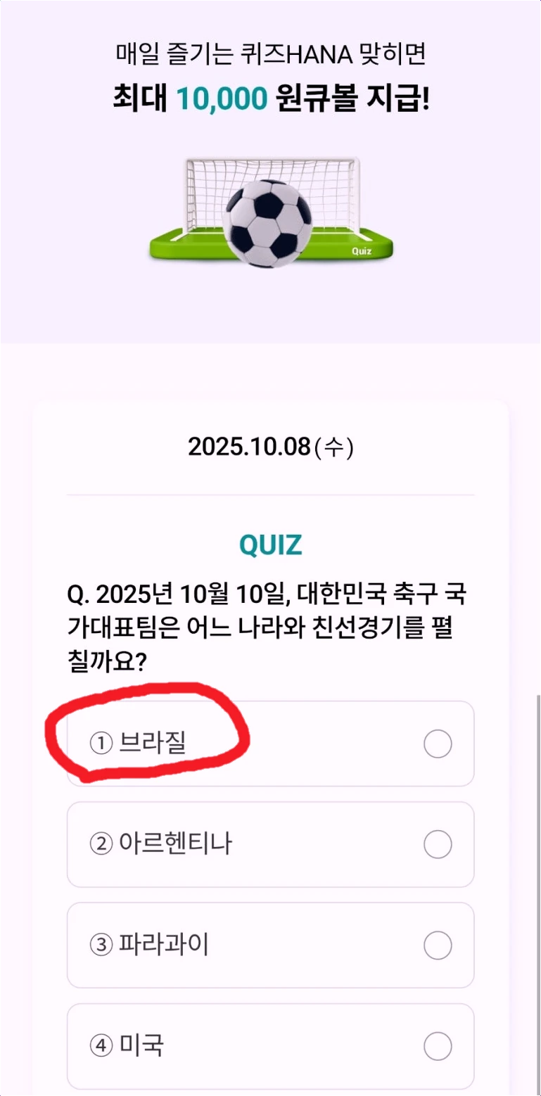 오늘 바로 하나원큐 앱을 열고 축구 퀴즈에 참여하며 포인트와 재미를 동시에 챙겨보세요.