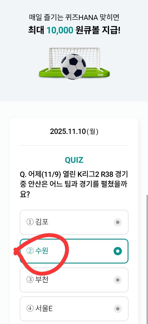하나원큐 축구퀴즈 11월 10일 정답 축덕이라면 꼭 알아야 할 포인트 모으기 비법