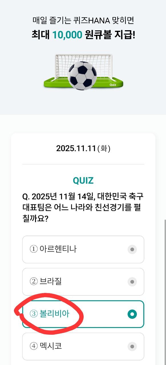 하나원큐 축구퀴즈 11월 11일 정답 축덕이라면 꼭 알아야 할 포인트 모으기 비법