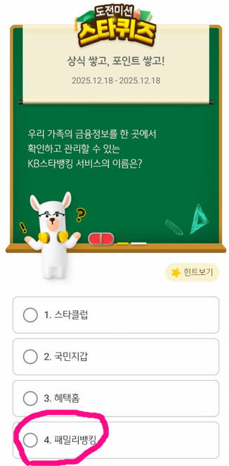 | H.Point 퀴즈/12월 18일 정답 최신 정보/포인트 꿀팁! (0) | 2025.12.18 |