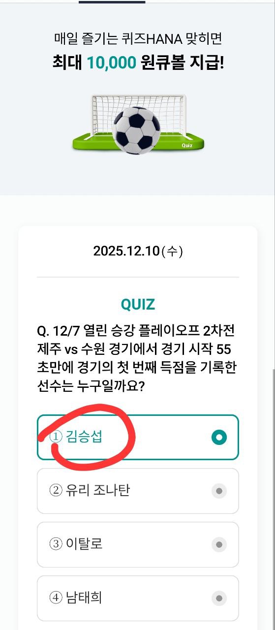 하나원큐 축구 퀴즈는 짧은 시간 투자만으로