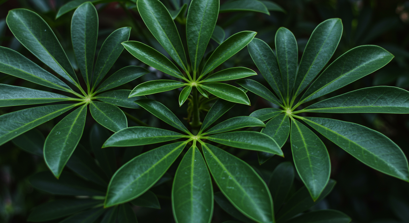 홍콩야자는 **쉐플레라(Schefflera arboricola)**라는 이름의 열대 관엽식물입니다.