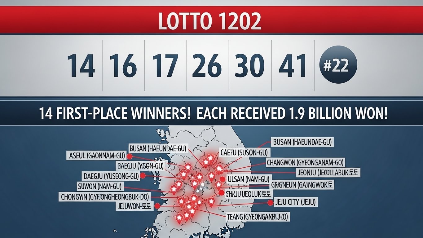 매주 토요일 밤, 많은 이들의 심장을 두근거리게 하는 로또! 2025년 12월 13일 추첨된 제1202회 로또는 역대급 당첨으로 화제를 모았습니다. 이번 회차 1등 당첨번호와 함께, 행운의 주인공들이 복권을 구매한 전국 당첨지역 판매점까지 상세하게 공개합니다. 과연 여러분의 동네에도 행운의 기운이 깃들었을까요? 지금 바로 확인해 보세요!