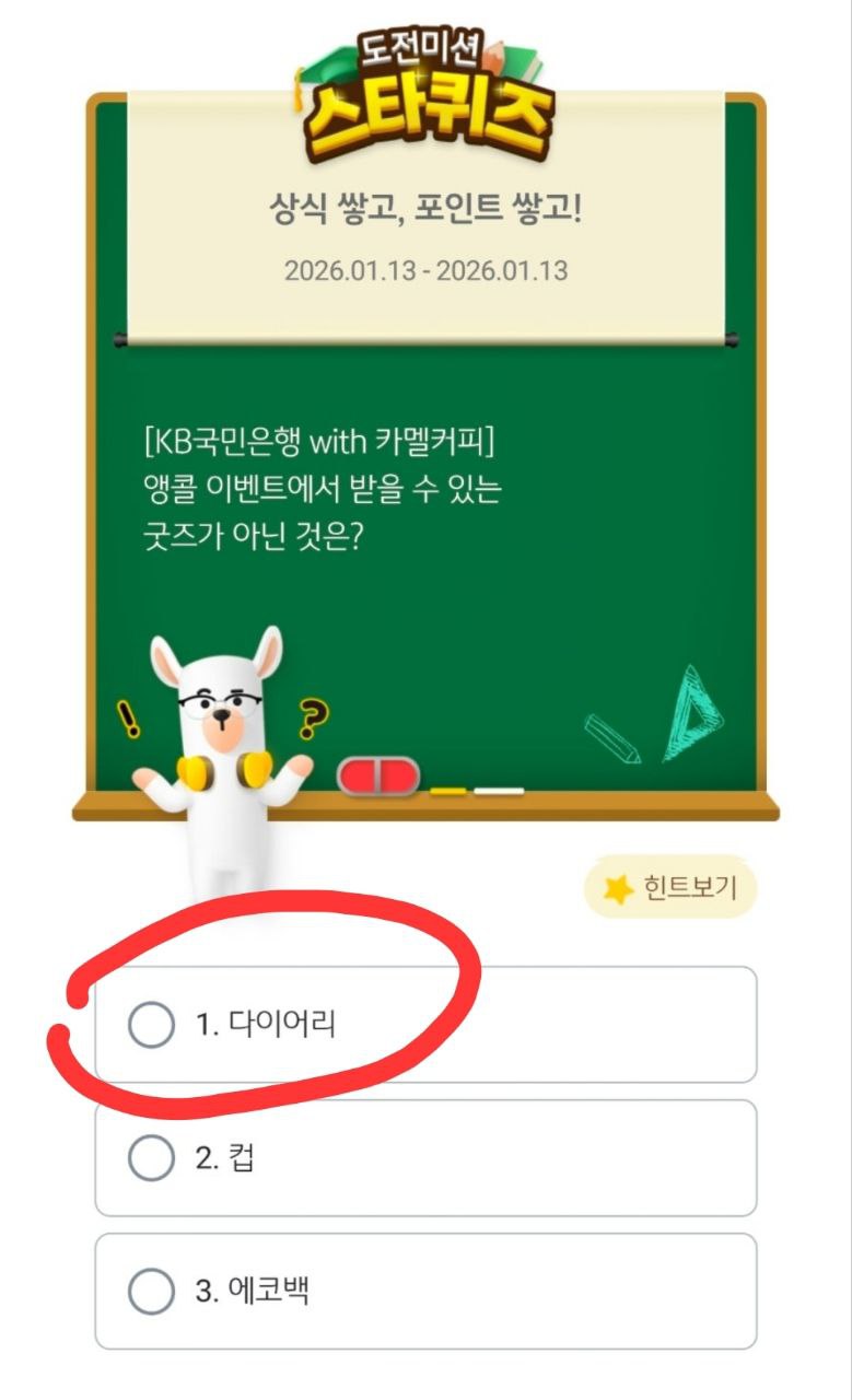 KB스타뱅킹 스타퀴즈 1월 13일 정답 및 포인트리 적립 꿀팁
