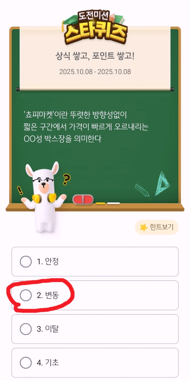 짧은 시간에도 퀴즈를 풀어 포인트를 적립할 수 있어요. - 정답 확률 높이기