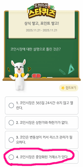 그러니 퀴즈 메뉴가 보이지 않을 땐 앱 업데이트 여부를 먼저 확인하세요.