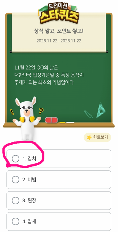 4 오늘의 퀴즈 문제 확인 → 보기 중 정답 선택