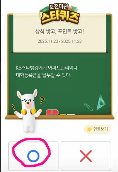 KB스타뱅킹 앱에서는 매일 출제되는 스타퀴즈를 통해