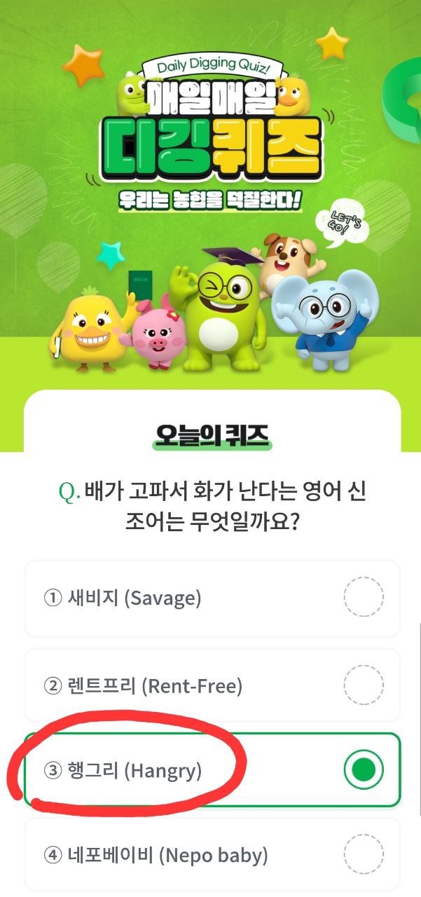 3. 데일리 퀴즈 또는 디깅퀴즈 선택 후 문제 풀기