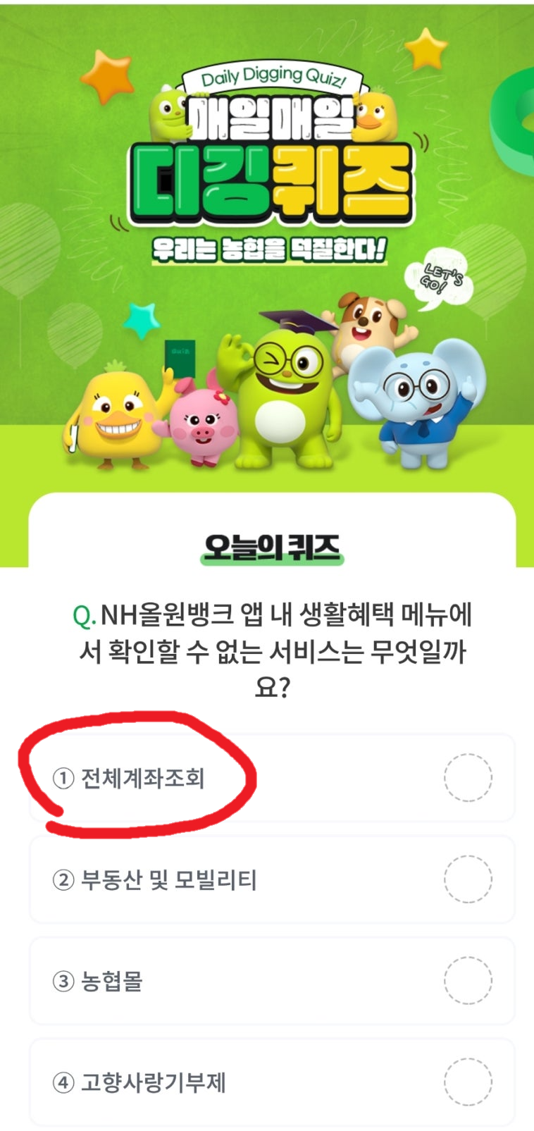 NH올원뱅크에서 제공하는 디깅퀴즈는 매일 새로운 문제를 풀고 NH포인트를 적립할 수 있는 이벤트입니다.