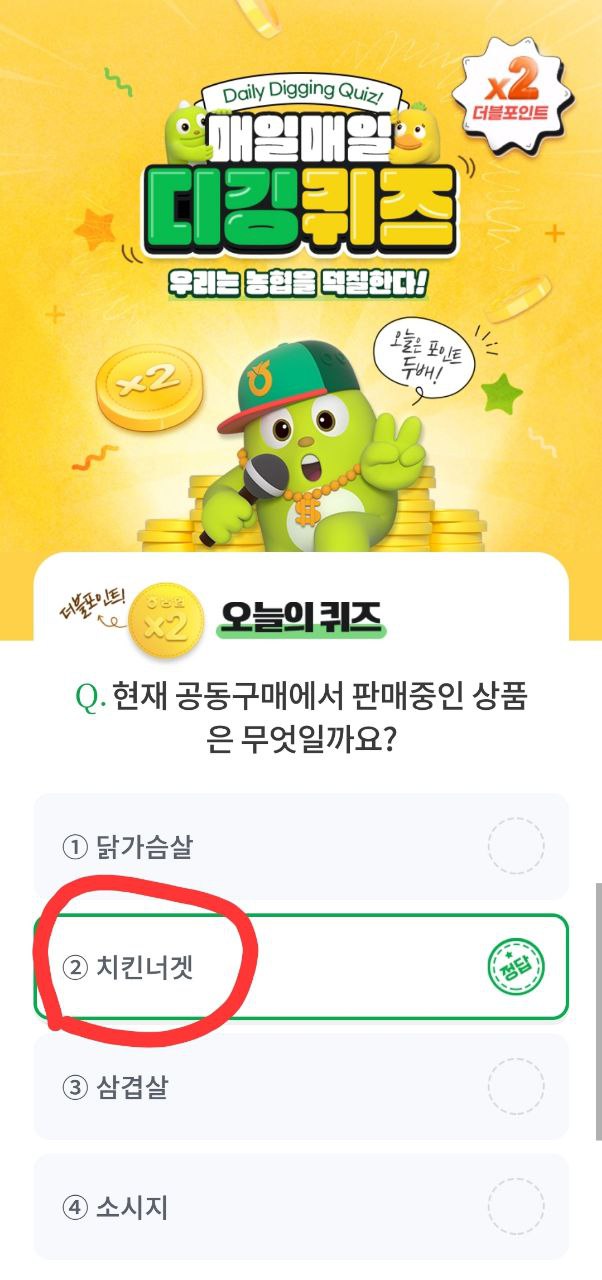 정답을 맞히면 NH포인트가 즉시 적립되며, 특정일에는 포인트 2배 적립 이벤트도 진행됩니다.
